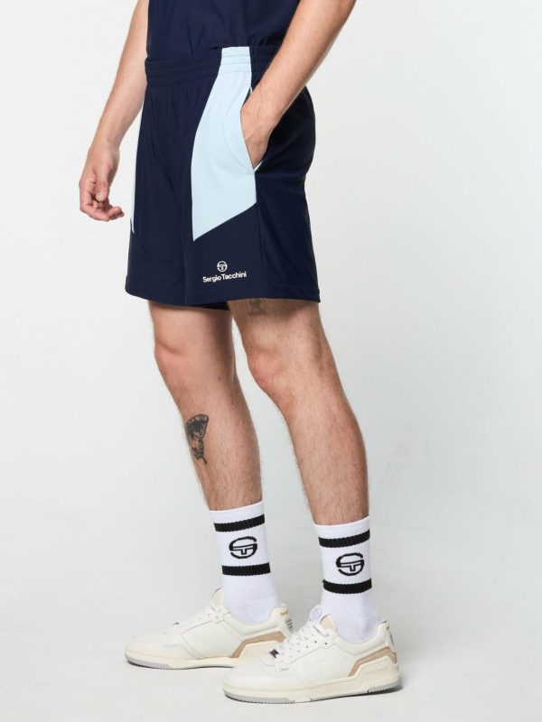 The Angolo Short is made of moisture-wicking performance piqué with a subtle stretch to keep you cool and moving freely through any workout. Perfect for on and off-court wear, these color-blocked shorts are complete with chevron seam detailing, spacious pockets for your essentials, and a Sergio Tacchini logo at the left hem.