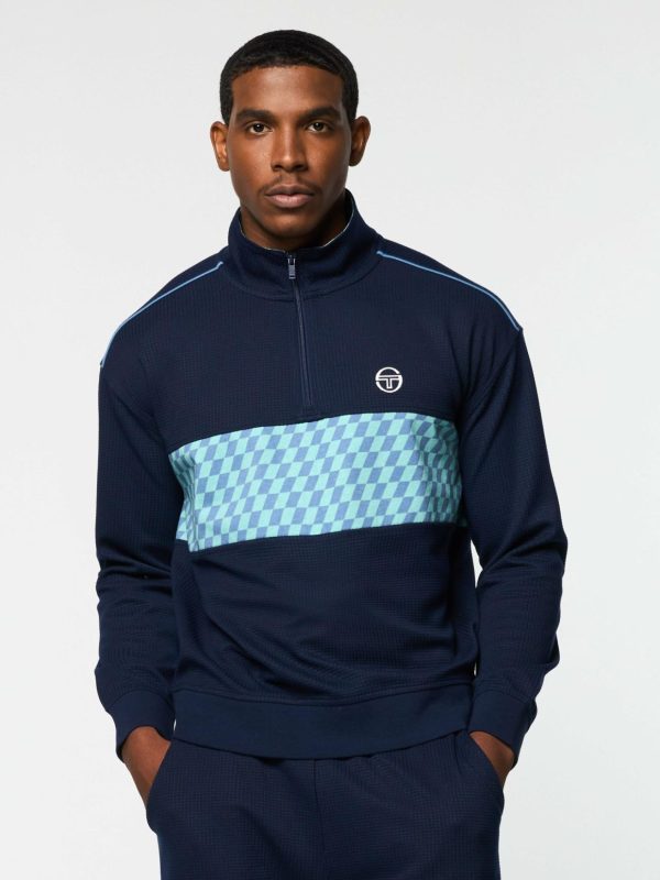 A fresh take on performance sportswear, the Cialda Half Zip is a cozy waffle knit featuring a retro pop color checkerboard print to keep you stylish and comfortable from morning warm-ups to evening outings. Cut with a half-zip stand-up collar for all-season climate control, this premium pullover is finished with contrast piping details and an embroidered ‘ST’ monogram logo.