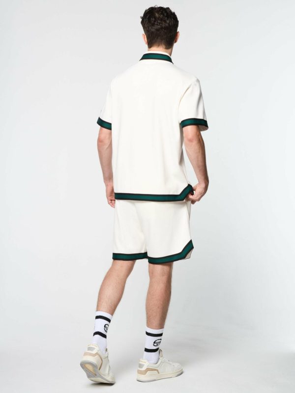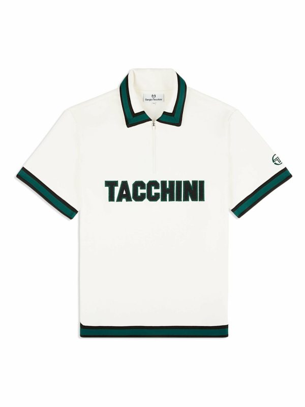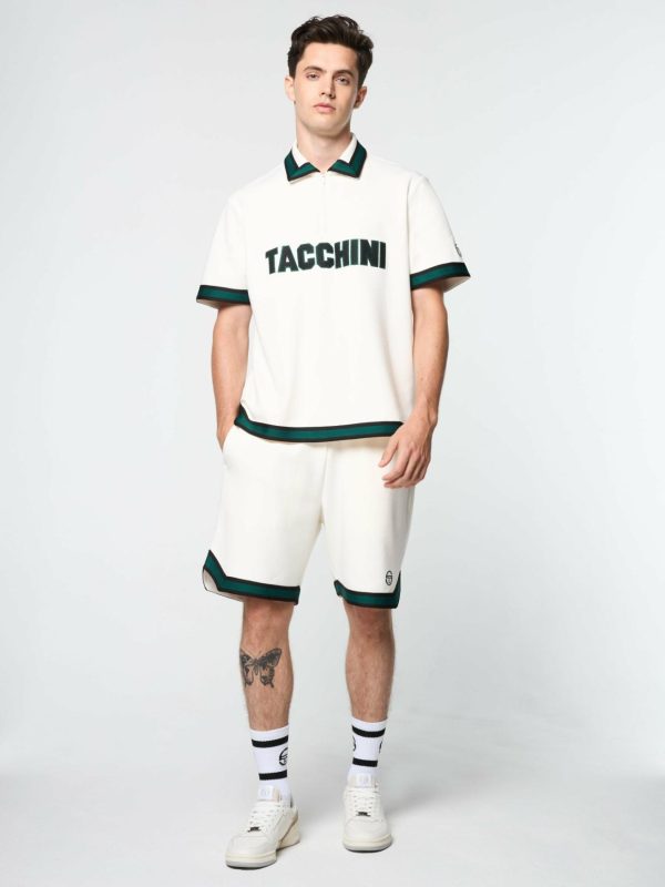 Keep it sharp with the elevated Tito Short Sleeve Polo, crafted from heavyweight interlock fabric with an incredibly soft hand and subtle stretch for a refined finish. Topped with a zippered placket, this premium polo is complete with a notched hem, striped rib-knit taping at the trims, and a bold chainstitched Tacchini logo at the chest.