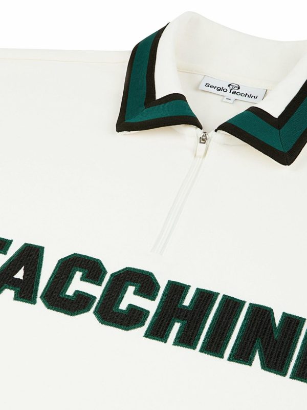- ‘Tacchini’ logo in chainstitch embroidery at chest