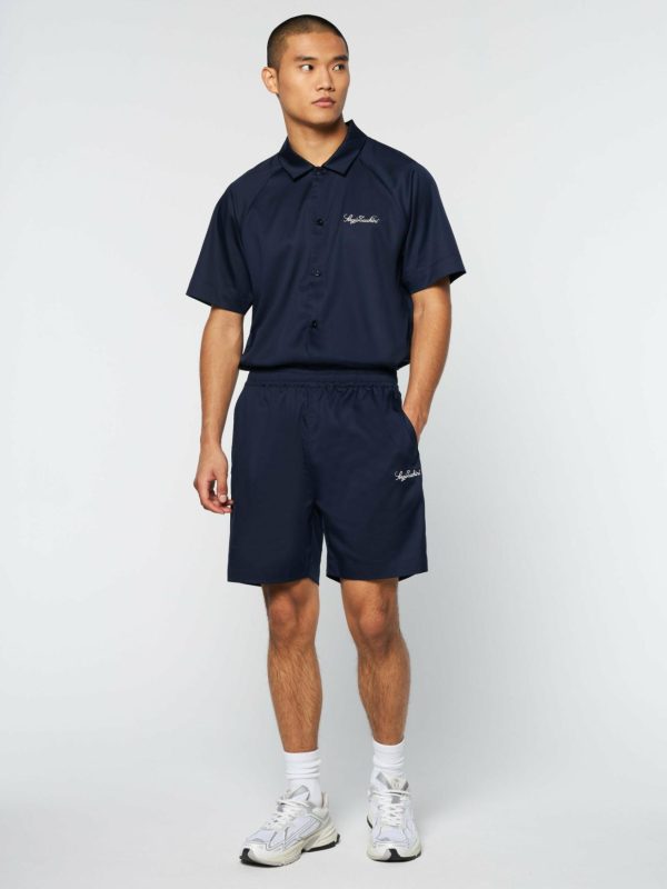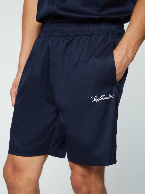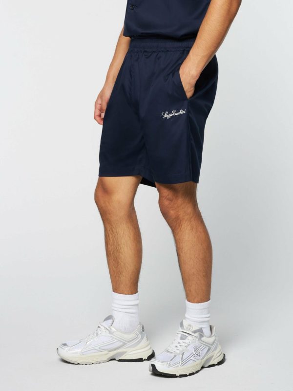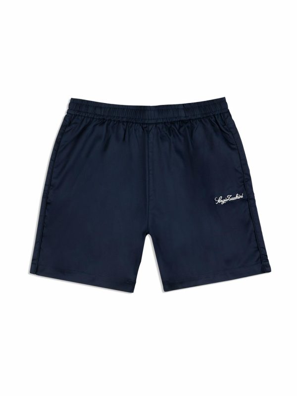 - Embroidered Sergio Tacchini script logo at left thigh