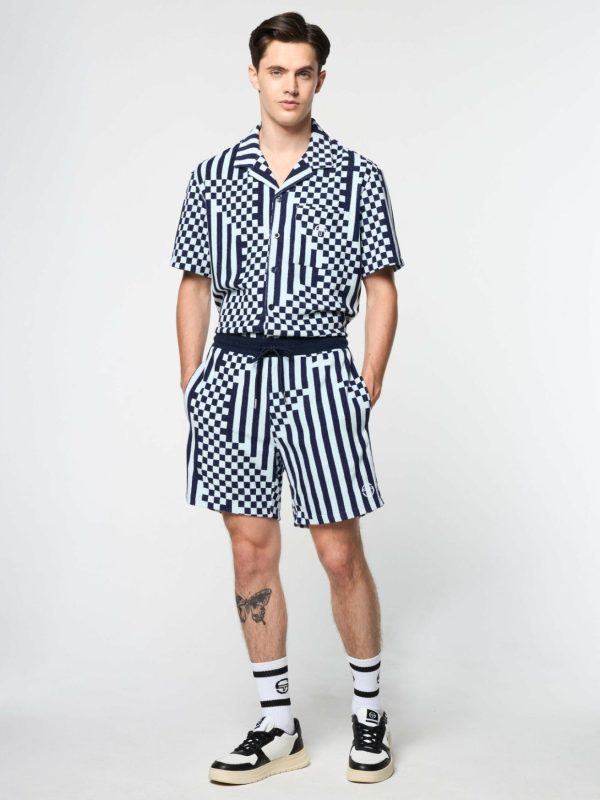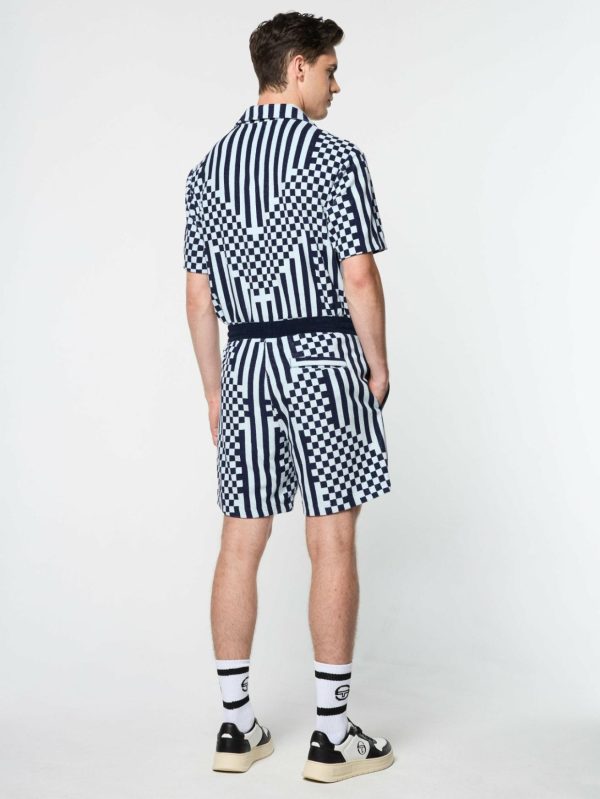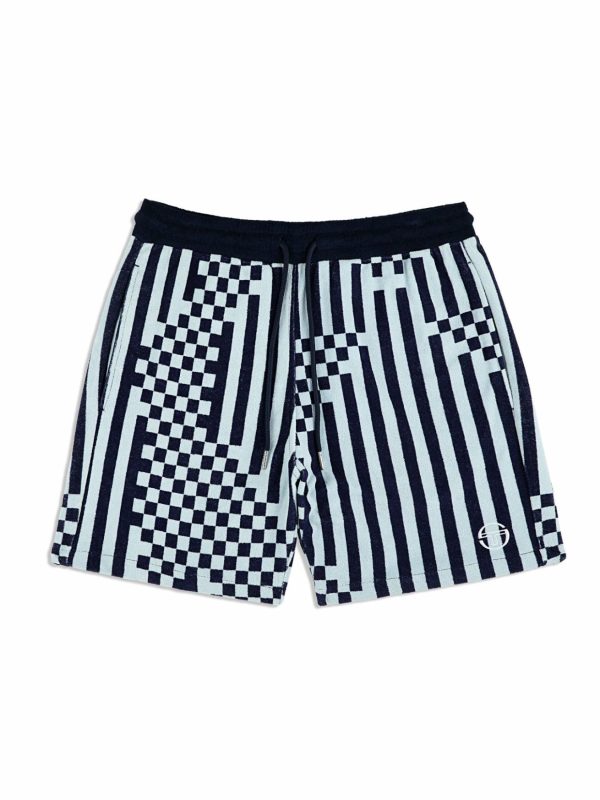Elevate your wardrobe with our premium Piastrella Terry Cabana Short. A nod to luxury resort loungewear, these super comfy shorts are crafted from plush terry toweling and feature a retro two-tone geometric all-over pattern.