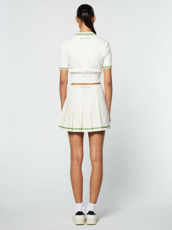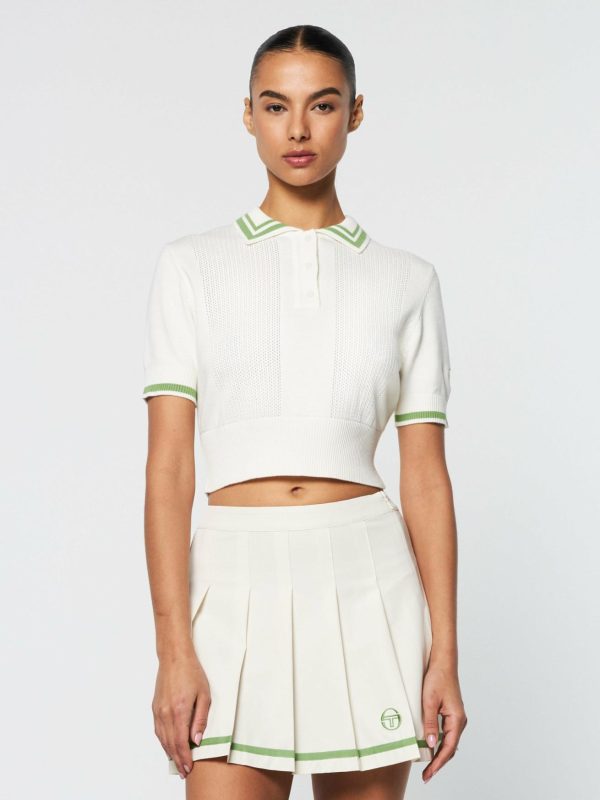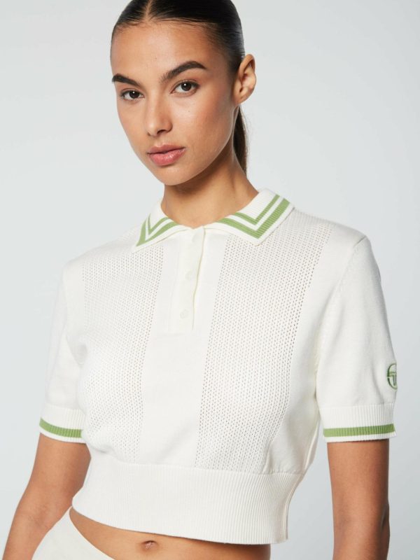 Crafted from premium cotton yarn that’s exceptionally soft to the touch, the Perla Knit Cropped Polo features breathable pointelle-knit panels at the front for an elevated look and feel. Designed with exquisite attention to detail, this luxe polo is finished with contrast embroidered logos and striping accents throughout.