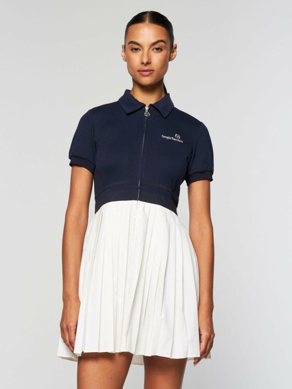 Our do-it-all Damarindo Dress is crafted in a versatile mid-length silhouette with a full-zip closure down the front for a design that’s made to move with you. Featuring a soft cotton polo top and pleated skirt over stretchy undershorts, this elevated tennis dress is finished with an embroidered logo at the left chest and our distinctive double stripe at the waist.