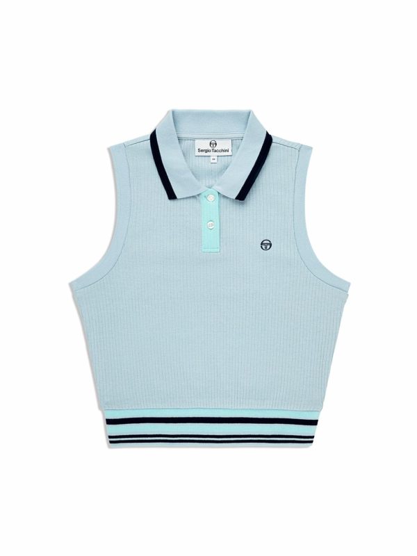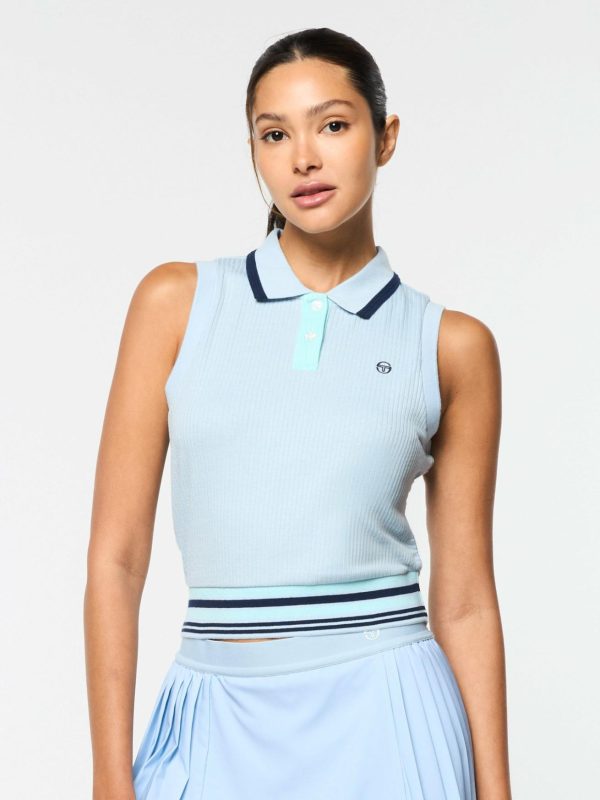Style meets comfort in the Noale Cropped Tennis Polo, crafted from exceptionally soft rib fabric with a subtle stretch to keep you moving freely through your day. Perfect for a pickup game or lunch with friends, this elevated sleeveless polo features corded contrast tipping at the collar, a 2-button placket for easy venting, and stripe accents at the rib-knit hem.